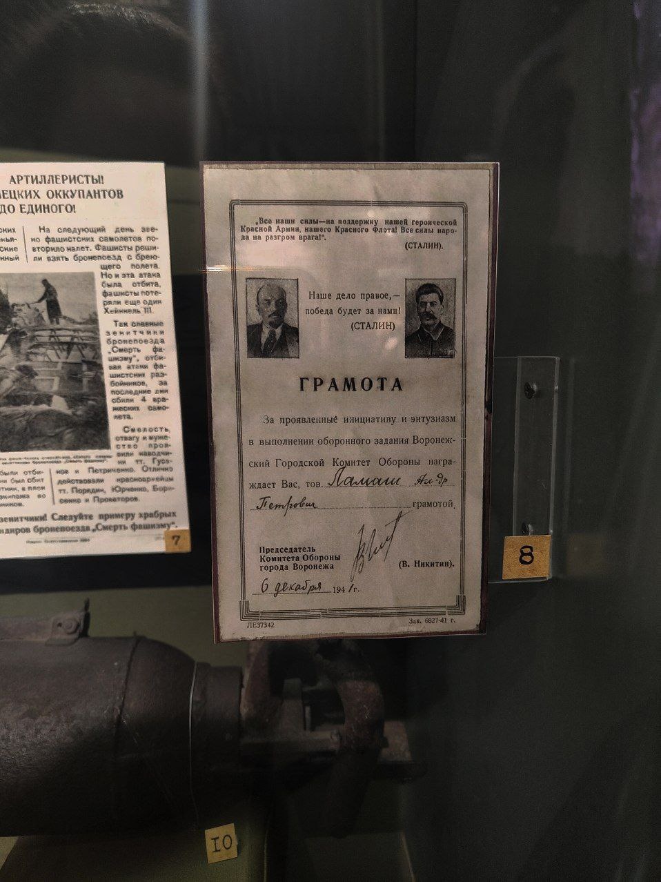 Музей “Арсенал” находится на спуске к Чернавскому мосту. При входе в здание вы сразу погружаетесь в атмосферу периода Великой Отечественной войны. В главном зале демонстрируют фильмы о тех событиях, а из радио постоянно доносится голос Левитана. Обстановка здесь максимально приближена к эпохе: кирпичные колонны, расставленное по залу оружие, письма солдат, военная форма, предметы быта, макет разрушенного Воронежа и многое другое. Варианты экскурсий здесь такие же, как и в краеведческом музее. Но для полного погружения советуем всё же обратиться к экскурсоводу.