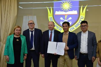 В Белом зале главного корпуса ВГУ собрались представители двух стран, чтобы укрепить академические связи, уходящие корнями в далекое прошлое. Делегацию из университета Дай Нам (основан в 2007 году в районе Ха Донг, Ханой) возглавили Чан ХЮУ Зоанг (член Совета университета), Чан ВАН Ле (декан факультета коммуникации) и Нгуен МАЙ Чи (заместитель декана факультета китайского языка). Их тепло приветствовали исполняющий обязанности ректора ВГУ Юрий СТАРИЛОВ, декан факультета журналистики Владимир ТУЛУПОВ и директор Института международного образования Алла АКУЛЬШИНА.