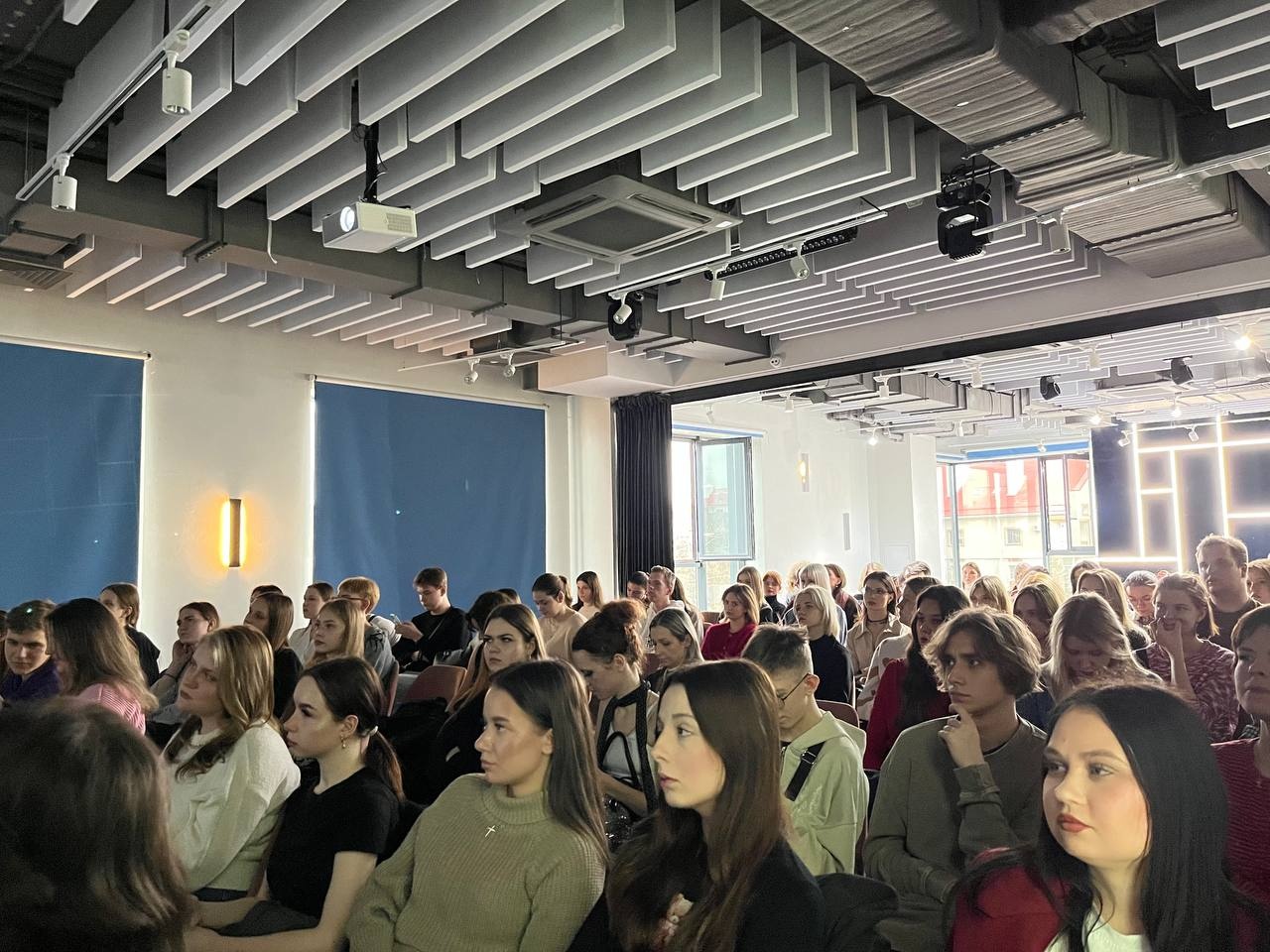 На встрече присутствовали студенты 1 и 2 курсов направлений «Журналистика» и «Телевидение» журфака Воронежского государственного университета, а также студенты 2 курса направления «Журналистика» Воронежского государственного технического университета. В конференц-зале собралось около 50 человек, которые ждали начала встречи. Оно задержалось на полчаса, но, тем не менее, это не испортило впечатление от нее.