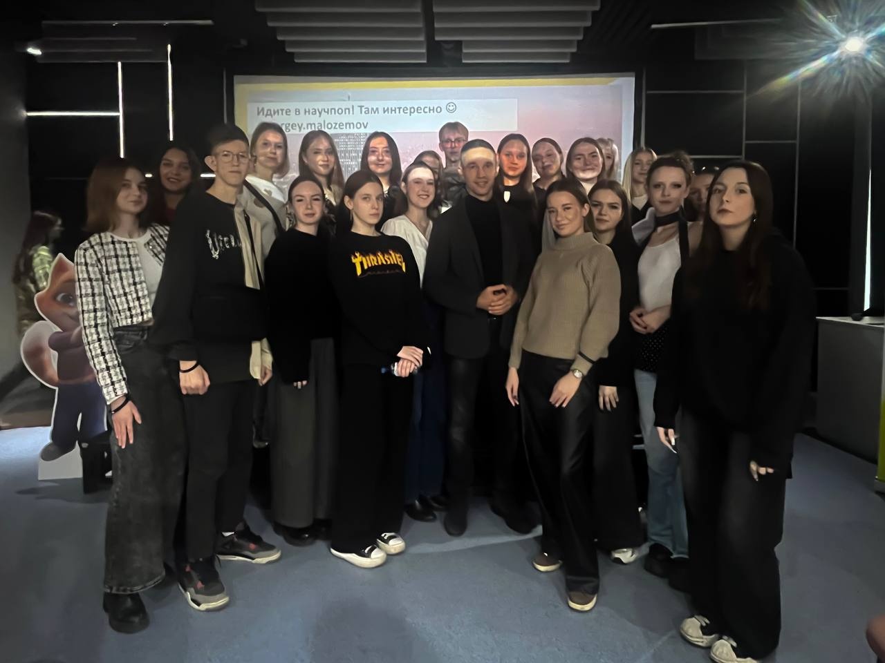 Завершилась встреча тем, что студенты сфотографировались с Сергеем Малозёмовым и поблагодарили его за интересную и полезную информацию.