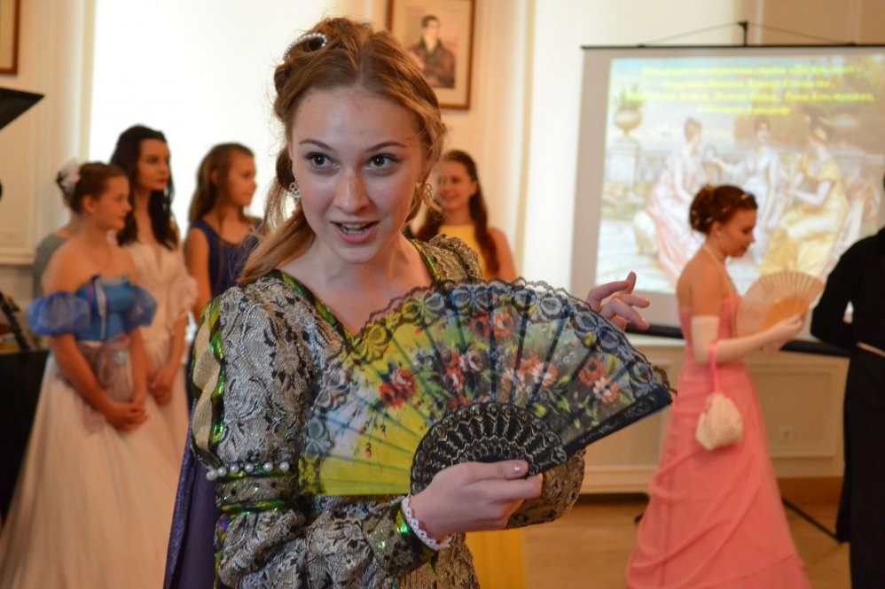 — Проект был очень интересен для меня и, наверное, для любого, кто участвовал и организовывал этот прекрасный вечер. Участие приняли не только театральные коллективы Центра творчества, но и ребята, которые занимаются танцами, рисуют, поют. Было очень интересно смотреть вальс и полонез в исполнении студентов хореографического училища. Наши ребята сильно волновались, но не смотря на это выступили достойно! Я играла Софью Николаевну Сомову-Сталь фон Гольштейн. Перед тем, как сыграть эту барышню, я изучала как выглядела графиня, узнавала факты из ее истории. Сначала не понимала ее, но потом все было прекрасно! Отрывки мы начали готовить примерно за месяц. Репетиции были как внутри театральной студии, так и сводные, с другими участниками. Последние были самыми интересными! Например, когда нам сказали, что мы будем играть в ручеек, оказалось, что никто не умеет в него играть. Однако, прошло 10 минут и… все было готово!