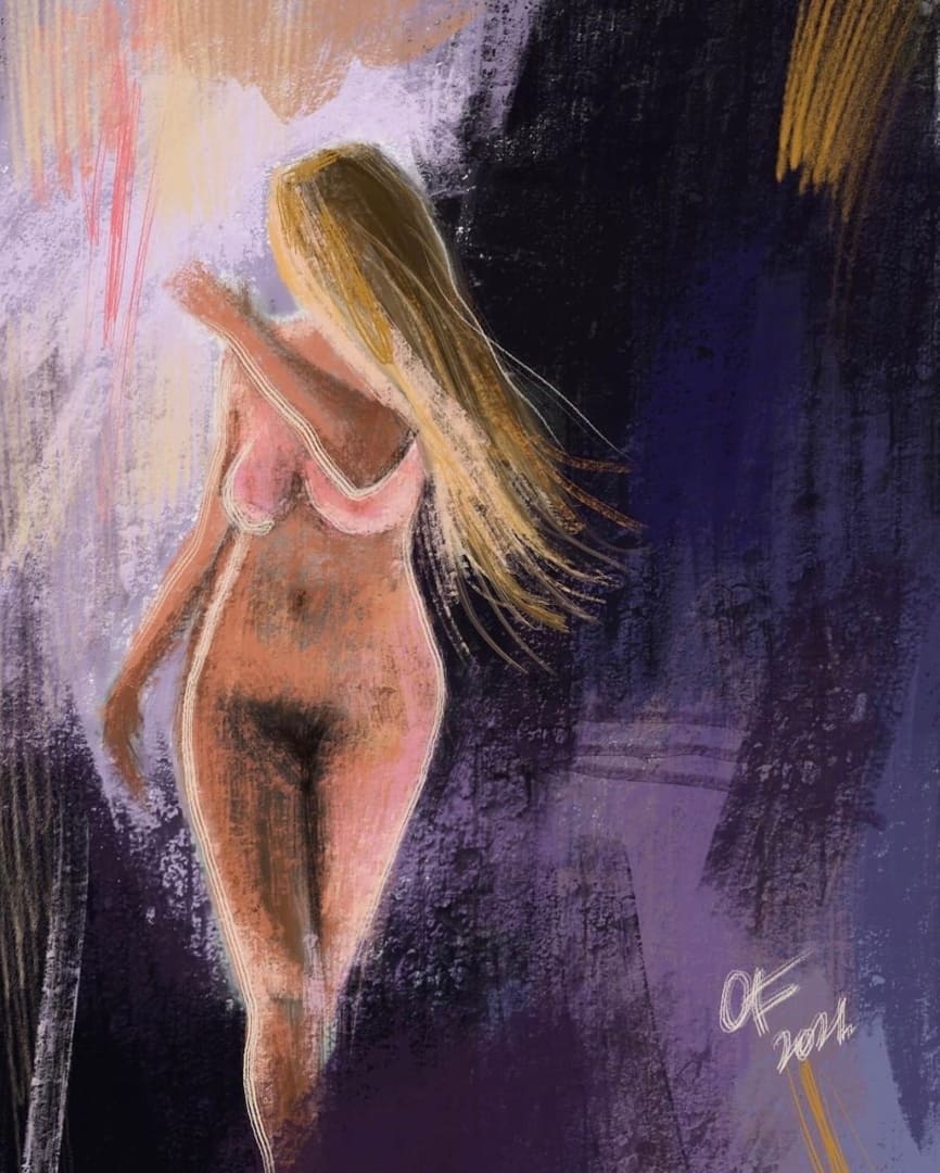 Спустя год Оля начала рисовать свои первые небольшие «ню» работы — это были нежные акварели, прозрачные.