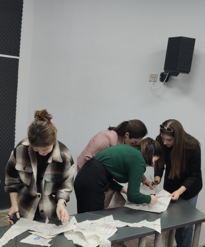 После этого участников телемоста ждал небольшой конкурс. Участникам необходимо было вырезать как можно больше элементов одежды в течение трëх минут двадцати трëх секунд (отсылка к дате проведения телемоста). В Воронеже образовалось две команды по три человека в каждой, им удалось вырезать 4 и 15 деталей. В Челябинске – четыре команды, наилучший результат среди которых – 16 деталей.