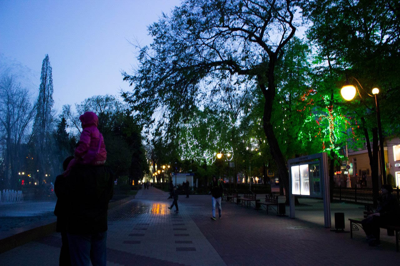 В праздник весны и труда в Кольцовском сквере было людно. Еще бы, ведь в нем впервые после перерыва на зиму заработал светомузыкальный фонтан. До самой церемонии открытия в сквере можно было полюбоваться на отблески фонтана в закатном солнце, вдохнуть запах весенней зелени и послушать современный джаз в исполнении музыкальной группы. Свежая, ритмичная музыка скрасила ожидание основного действа.